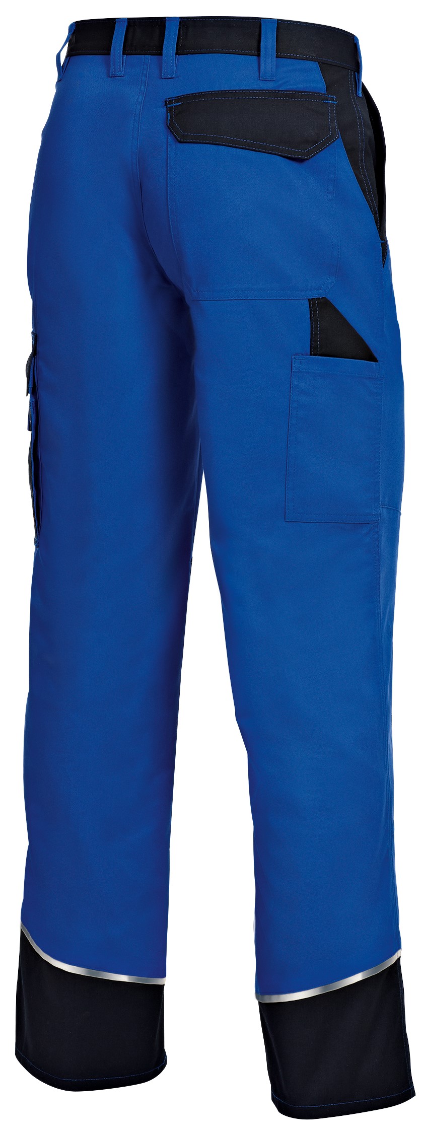 - 2 Seitentaschen, Schenkeltasche mit aufgesetzter Smartphone- und Stifttasche, doppelte Zollstocktasche, 1 mit Patte verschließbare Gesäßtasche, reflektierende Paspeln, Kniepolstertaschen