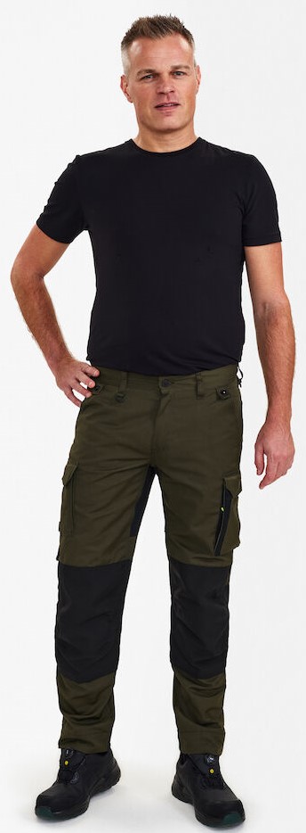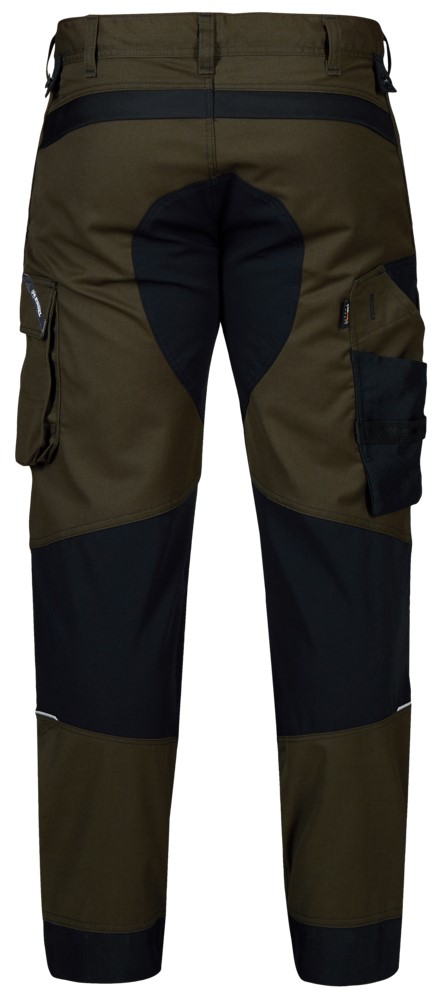 Funktionelle Handwerkerhose mit Stretch und schmaler Passform und vielen praktischen Details. Ergonomisch geformte Knie. Einsätze aus extrem elastischem, atmungsaktivem Stretchmaterial in den Kniekehlen sorgen für noch mehr Tragekomfort. D-Ring vorne z. B. für die ID-Karte. Zwei geräumige, schräg sitzende Einschubtaschen vorne. Zwei Gesäßtaschen mit Patte. Handytasche mit Patte am rechten Oberschenkel. Links sitzt eine Schenkeltasche mit Patte. Die Schenkeltasche besitzt ein zusätzliches Fach mit Reißverschluss. Verstärkte Zollstocktasche mit zusätzlichen Fächern und Werkzeugschlaufen. Schenkeltasche und Zollstocktasche mit freihängendem Boden gewähren optimale Bewegungsfreiheit. Knieverstärkung/Knietasche mit Klettverschluss oben für höhenverstellbare Kniepolster (zwei Einstellmöglichkeiten). Verstärkter Saum der Hosenbeine für extra hohe Verschleißfestigkeit. Gute Sichtbarkeit durch Reflexpaspeln mittig hinten auf den Hosenbeinen. Extra breiter Hosenaufschlag ermöglicht bei Bedarf eine Verlängerung der Schrittlänge. Für die Verlängerung der Schrittlänge ist bloß ein Saum aufzutrennen, dahinter kommt ein zusätzlicher Saum zum Vorschein.
