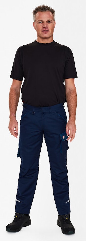 Funktionelle Arbeitshose mit vielen Details. Optimale Passform, u. a. sorgen ergonomisch geformte Knie und Panel an der Innennaht im Schritt für mehr Bequemlichkeit. Zwei geräumige, schräg sitzende Einschubtaschen vorne. Schlaufe mit D-Ring (vorne) zur Befestigung einer ID-Karte. Zwei geräumige Gesäßtaschen, die rechte mit Patte und Klettverschluss. Schenkeltasche mit Reißverschlusstasche fürs Handy, zusätzliche kleine Tasche. Zollstocktasche mit zusätzlichen Fächern. Die Zollstocktasche hat einen freihängenden Boden. Reflexstreifen unten an den Hosenbeinen für mehr Sichtbarkeit. Für Industriewäsche geeignet.