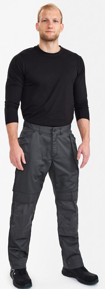 Funktionelle Handwerkerhose mit Kontraststeppnähten. Optimale Passform, ergonomisch geformte Knie. Zwei geräumige, schräg sitzende Einschubtaschen sowie zwei Holstertaschen vorne. Zwei Gesäßtaschen mit Patte. Schenkeltasche mit Patte sowie Einschüben für z. B. Stifte. Freihängende, verstärkte Zollstocktasche mit extra Fächern garantiert optimale Bewegungsfreiheit. Verstellbare Hammerschlaufe. Verstärkte Knietaschen mit zwei Einstellmöglichkeiten für Knieschutzkissen. Verstärkter Saum der Hosenbeine für extra hohe Verschleißfestigkeit. Gute Sichtbarkeit durch Reflexpaspeln mittig hinten auf den Hosenbeinen. Die Hose verfügt über einen extra breiten Hosenaufschlag, sodass sich bei Bedarf die Schrittlänge verlängern lässt. Für zusätzliche Beinlänge muss nur ein Saum aufgetrennt werden, dahinter verbirgt sich ein zusätzlicher Saum.