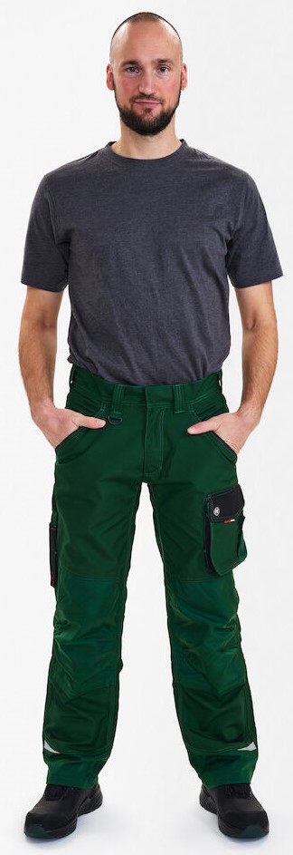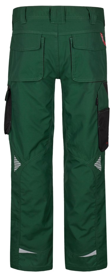 Funktionelle Arbeitshose mit vielen Details. Optimale Passform, u. a. sorgen ergonomisch geformte Knie und Panel an der Innennaht im Schritt für mehr Bequemlichkeit. Zwei geräumige, schräg sitzende Einschubtaschen vorne. Schlaufe mit D-Ring (vorne) zur Befestigung einer ID-Karte. Zwei geräumige Gesäßtaschen mit Patte und Klettverschluss. Schenkeltasche mit Reißverschlusstasche fürs Handy, zusätzliche kleine Tasche. Sie ist geräumig und sorgt dank des freihängenden Bodens für mehr Bewegungsfreiheit. Unten verstärkte Zollstocktasche mit zusätzlichen Fächern. Auch die Zollstocktasche hat einen freihängenden Boden. Knieverstärkung/Knietasche mit Klettverschluss unten sowie zwei Einstellmöglichkeiten für Knieschutzkissen. Verstärkter Saum der Hosenbeine hinten und vorne für extra hohe Verschleißfestigkeit. Reflexstreifen an den Knien und unten an den Hosenbeinen für mehr Sichtbarkeit. Für Industriewäsche geeignet.