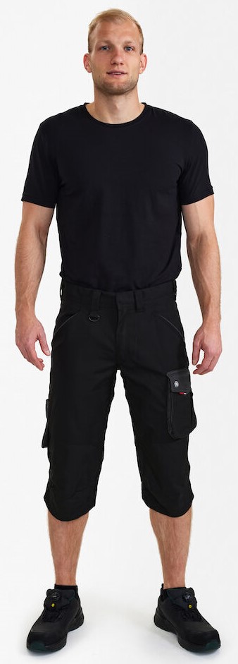 Funktionelle 3-4-Hose mit vielen Details. Optimale Passform, u. a. sorgen ergonomisch geformte Knie und Panel an der Innennaht im Schritt für mehr Bequemlichkeit. Zwei geräumige, schräg sitzende Einschubtaschen sowie zwei Holstertaschen vorne. Schlaufe mit D-Ring (vorne) zur Befestigung einer ID-Karte. Zwei geräumige Gesäßtaschen mit Patte und Klettverschluss. Schenkeltasche mit Reißverschlusstasche fürs Handy, zusätzliche kleine Tasche. Sie ist geräumig und sorgt dank des freihängenden Bodens für mehr Bewegungsfreiheit. Unten verstärkte Zollstocktasche mit zusätzlichen Fächern. Auch die Zollstocktasche hat einen freihängenden Boden. Knieverstärkung/Knietasche mit Klettverschluss unten sowie zwei Einstellmöglichkeiten für Knieschutzkissen. Für Industriewäsche geeignet.