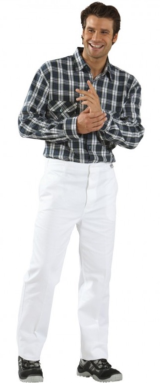 Rundbund mit 7 Schlaufen, Hosenschlitz geknöpft, 2 eingesetzte Vordertaschen, 1 verstärkte Gesäßtasche, 1 Maßstabtasche.
