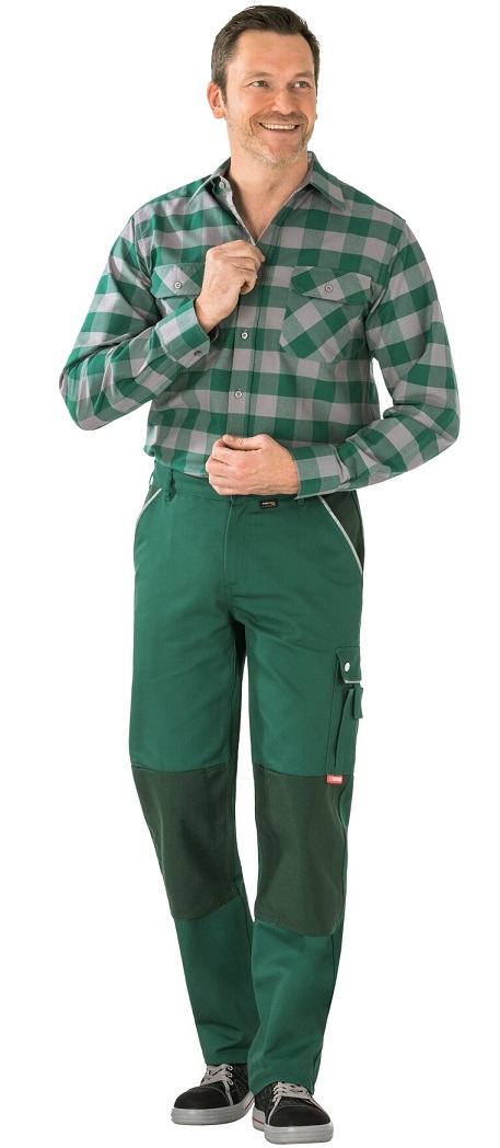 Dieser Artikel ist in Verbindung mit einem PLANAM Kniepolster (Art.-Nummer 9901027) als Knieschutz nach EN 14404 Typ 2, Stufe 1 zertifiziert. Knietaschen aus Cordura®, 2 eingesetzte Beuteltaschen aus Cordura®, rechts doppelte Maßstabtasche aus Cordura®, Reflexbiesen an den Tascheneingriffen und den Taschenpatten, links Oberschenkeltasche mit Patte und Druckknöpfen, darauf aufgesetzte Handytasche, Gummizug im Bund, rechts 1 verstärkte Gesäßtasche, Rundbund mit 7 Gürtelschlaufen und Jeansknopf, Reißverschluss im Hosenschlitz.