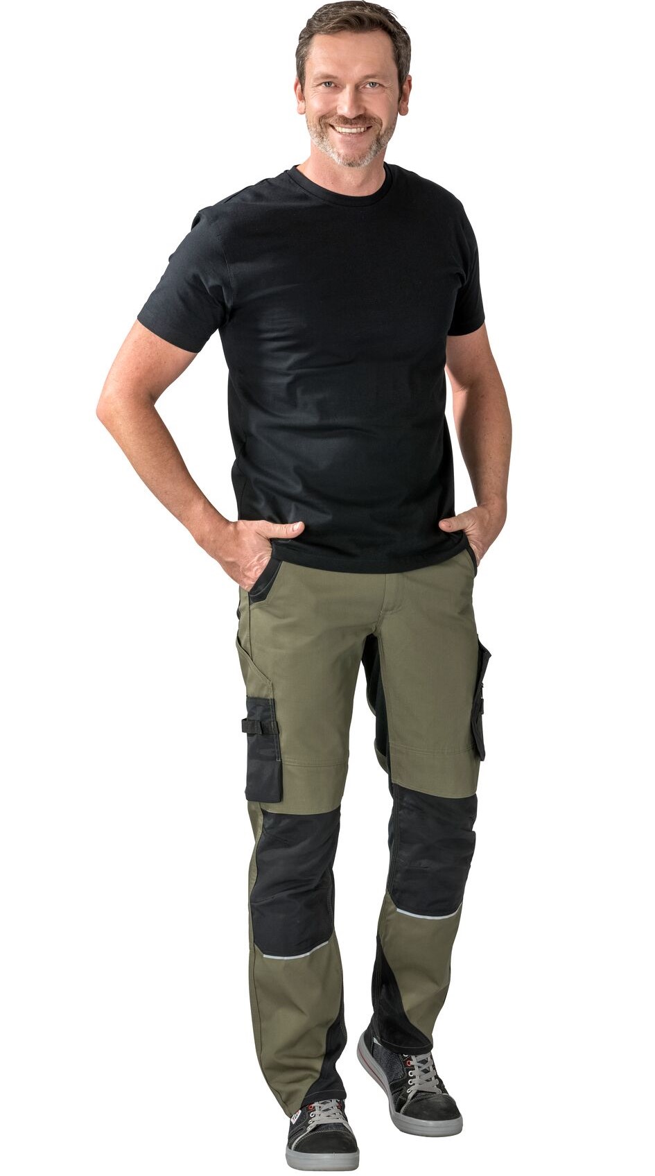 - 2 aufgesetzte Knietaschen, von oben zu bedienen