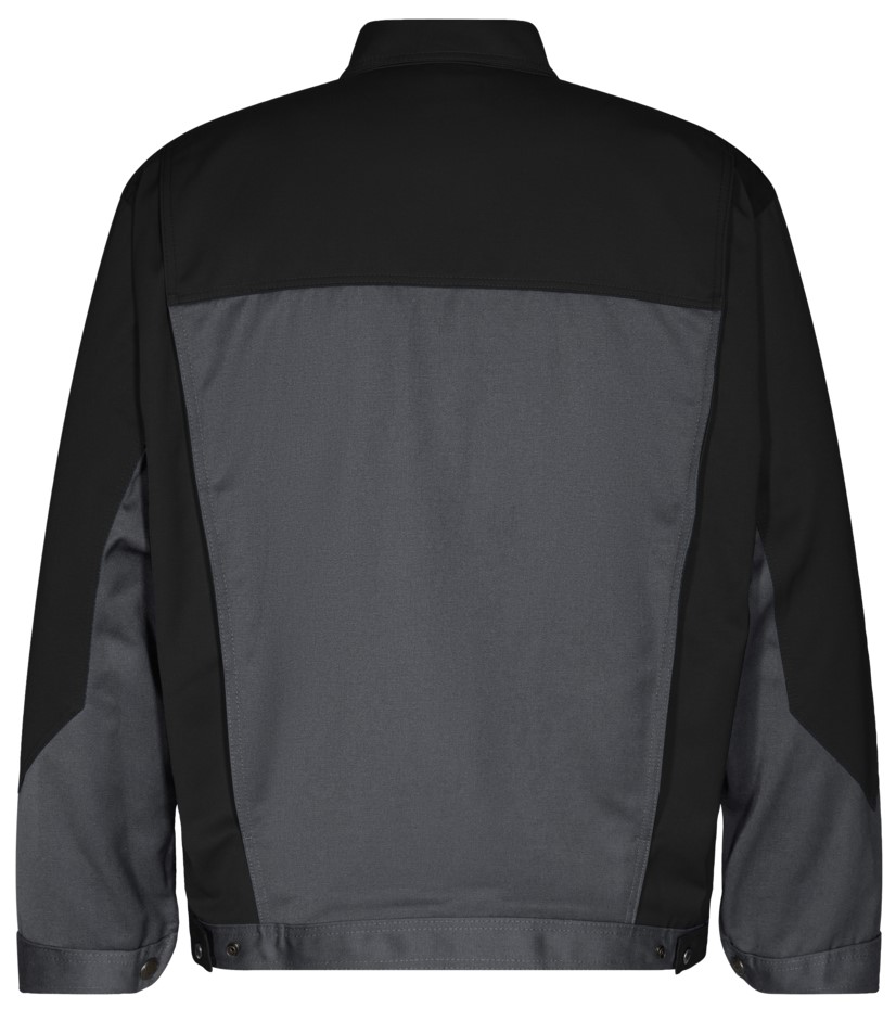Arbeitsbundjacke mit verdecktem Kunststoffreißverschluss in passendem Farbdesign. Dunkel gefärbte Druckknöpfe. Brusttasche mit Patte und Klettverschluss links. Offene Brusttasche mit verschließbarer Handytasche rechts. Zwei Eingrifftaschen. Dreifach Kappnähte. Innentasche mit Patte. Verstärkte Oberarme. Bund und Manschetten verstellbar. Zwei Dehnfalten im Rücken für mehr Bewegungsfreiheit. Für Industriewäsche geeignet.