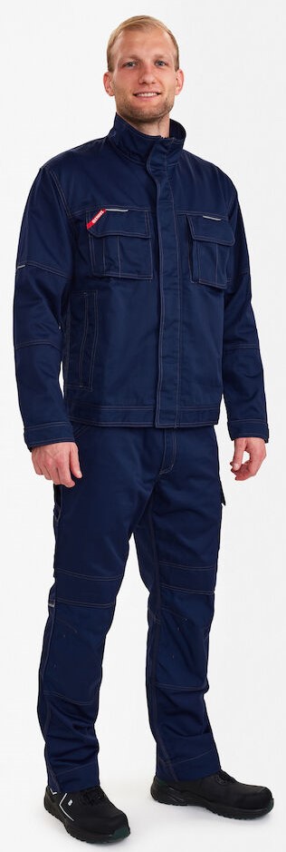 Funktionelle Arbeitsjacke mit Kontraststeppnähten. Verdeckter Reißverschluss und Klettverschluss vorn. Zwei geräumige Einschubtaschen vorn. Zwei Brusttaschen mit Patte und Klettverschluss. Rechte Brusttasche mit Fächern (z. B. für Stifte). Linke Tasche mit Paspeltasche mit Reißverschluss, Schlaufe mit D-Ring und extra Tasche mit Fach für Werkzeug. Zwei geräumige Innentaschen mit Klettverschluss. Gute Sichtbarkeit durch Reflexpaspeln.