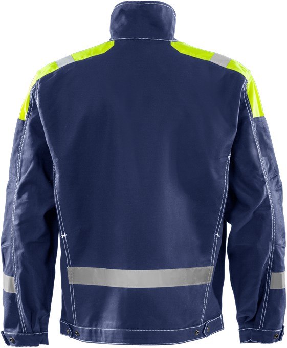 Strapazierfähige Handwerkerjacke, zu 100% aus robustem FAS®-Baumwollmaterial mit klassischem Design. Verdecktem Reißverschluss vorne und Warnschutzapplikationen an den Schultern.