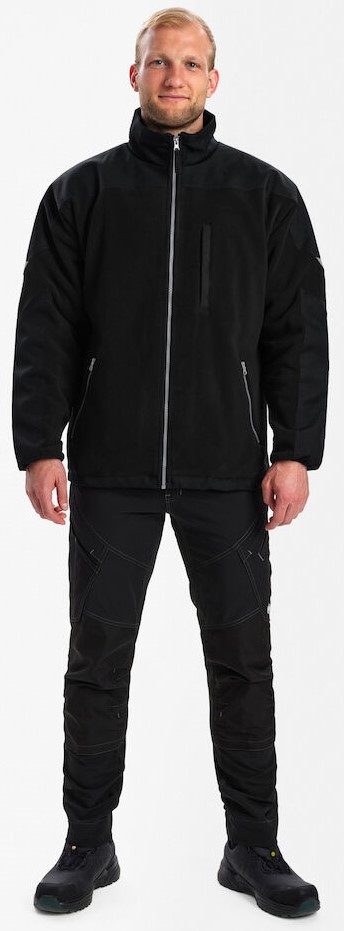 Fleecejacke mit verstärkten Canvas Schultern und Ärmelpartien. Kragen mit Fleecefutter und Schnurstopper. Grober Frontreißverschluss in passendem Farbdesign. Senkrecht eingearbeitete Brusttasche mit Reißverschluss. Zwei Eingrifftaschen mit Reißverschluss. Innen mit Gleitfutter.