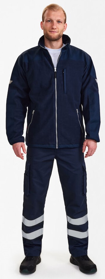 Fleecejacke mit verstärkten Canvas Schultern und Ärmelpartien. Kragen mit Fleecefutter und Schnurstopper. Grober Frontreißverschluss in passendem Farbdesign. Senkrecht eingearbeitete Brusttasche mit Reißverschluss. Zwei Eingrifftaschen mit Reißverschluss. Innen mit Gleitfutter.