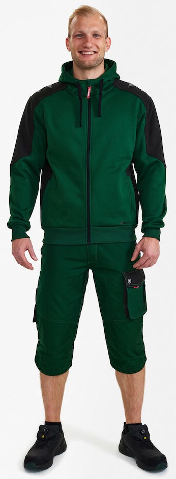 Funktionelle und angenehm zu tragende Sweatcardigan aus Jersey, innen mit geklebtem Fleece. Frontreißverschluss. Zwei große Einschubtaschen mit Reißverschluss. Strickbündchen an Bund und Ärmeln. Gute Sichtbarkeit durch reflektierenden Aufdruck auf den Schultern.