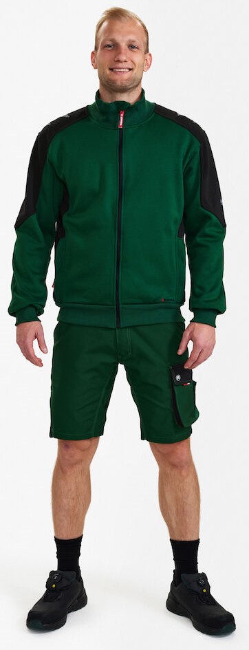 Funktioneller und angenehm zu tragender Cardigan aus Jersey, innen mit geklebtem Fleece. Frontreißverschluss. Zwei große Einschubtaschen mit Reißverschluss. Gerippter Kragen und Strickbündchen an Bund und Ärmeln. Gute Sichtbarkeit durch Reflexapplikationen auf den Schultern.