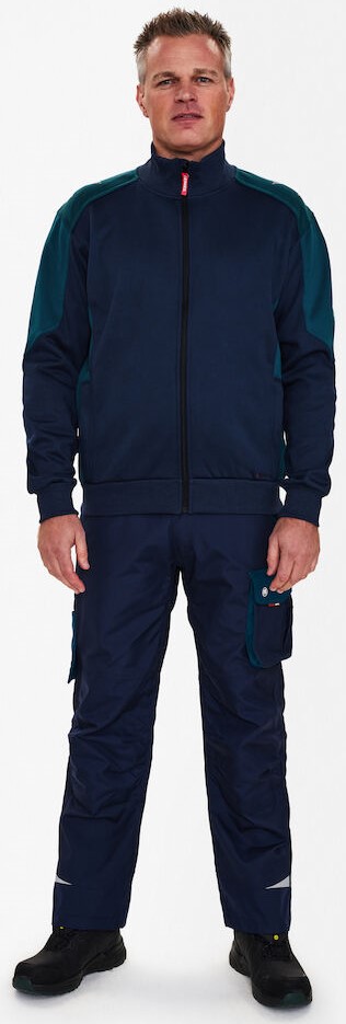 Funktioneller und angenehm zu tragender Cardigan aus Jersey, innen mit geklebtem Fleece. Frontreißverschluss. Zwei große Einschubtaschen mit Reißverschluss. Gerippter Kragen und Strickbündchen an Bund und Ärmeln. Gute Sichtbarkeit durch Reflexapplikationen auf den Schultern.
