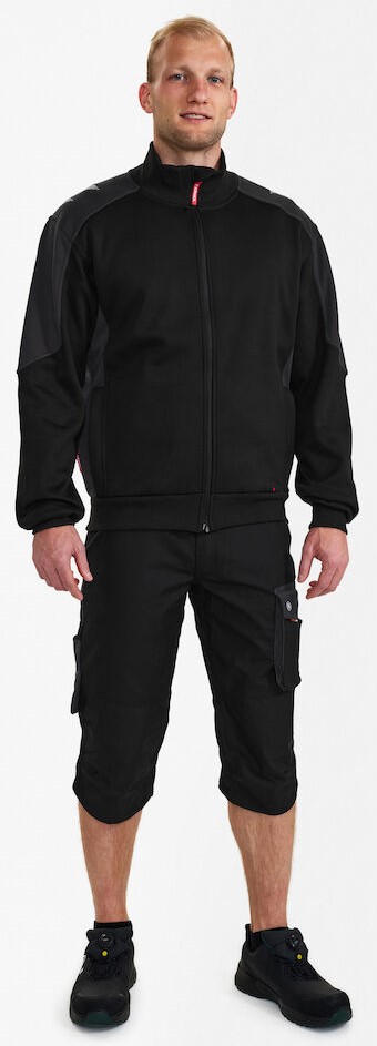 Funktioneller und angenehm zu tragender Cardigan aus Jersey, innen mit geklebtem Fleece. Frontreißverschluss. Zwei große Einschubtaschen mit Reißverschluss. Gerippter Kragen und Strickbündchen an Bund und Ärmeln. Gute Sichtbarkeit durch Reflexapplikationen auf den Schultern.