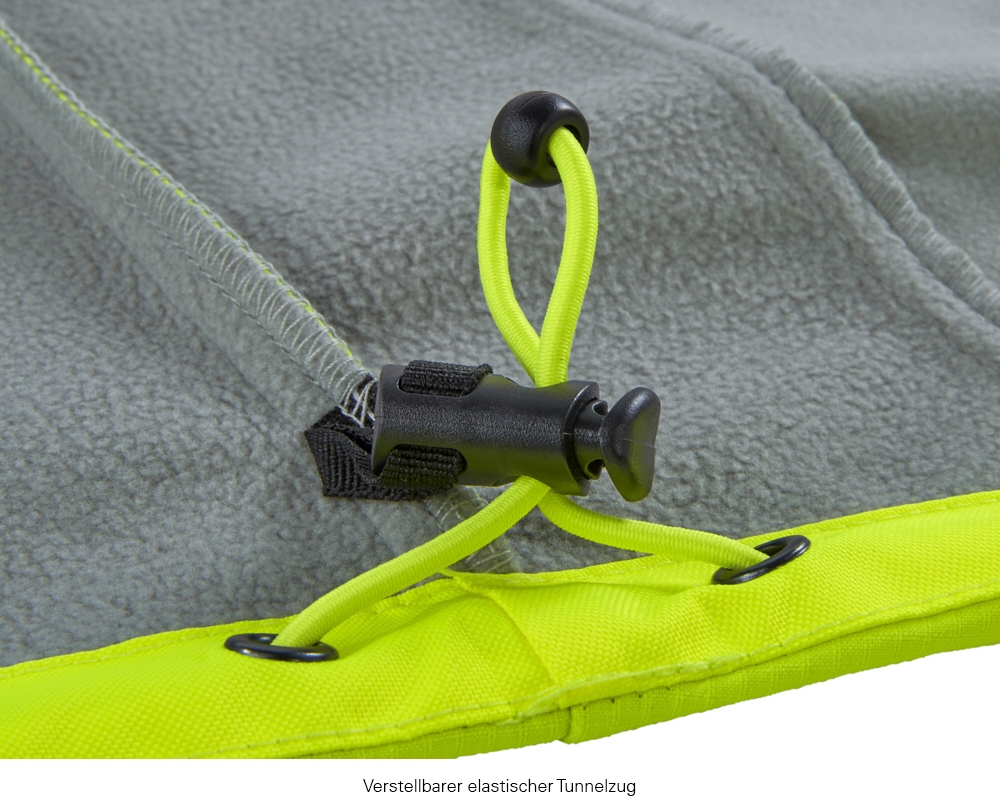 - Segmentierte, auflaminierte Reflexstreifen, umlaufend um Körper und Ärmel sowie über die Schulterpartien (Hosenträgerreflexstreifen)