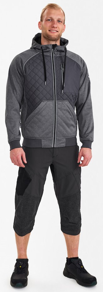 Funktionelle Softshelljacke mit gesteppter Vorderseite und Frontreißverschluss. Zwei geräumige Taschen und Brusttasche, alle mit Reißverschluss. Die Jacke hat Strickbündchen am Bund und an den Ärmeln. Reflektierende Paspeln vorne und hinten sowie an der Kapuze für mehr Sichtbarkeit.