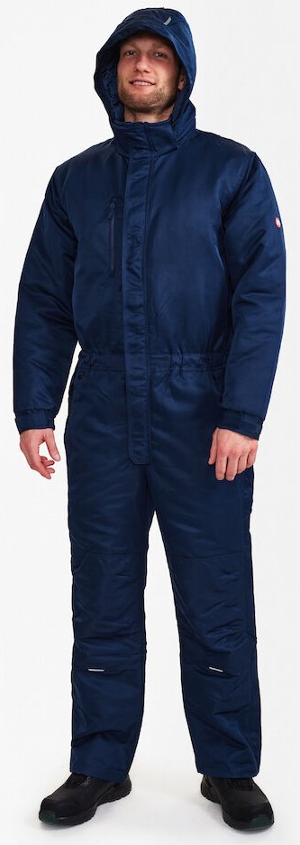 Wind- und wasserabweisender Winteroverall mit hohem Kragen in modernem Design. Zweiseitig kurze Knopfleiste und verdeckter 2-Wege-Reißverschluss sowie Klettverschluss vorne. Zwei geräumige Seitentaschen mit Klettverschluss. Brusttasche außen mit Reißverschluss und Handytasche innen, durch die ein Kabel gezogen werden kann. Abnehmbare und verstellbare Kapuze mit ausreichend Platz für den Arbeitshelm. Knieverstärkung. Verstellbare Bündchen an Ärmeln und Hosenbeinen unten. 2-Wege-Reißverschluss an der Außenseite beider Hosenbeine. Reißverschluss im Futter zum Anbringen eines Aufdrucks. Reflexpaspeln für bessere Sichtbarkeit.