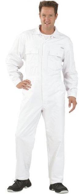 2 eingesetzte Beuteltaschen, 2 Gesäßtaschen, 2 Brusttaschen mit Patten, doppelte Maßstabtasche, Rückenteil mit eingenähtem Gummizug, verdeckter Reißverschluss, verstellbare Ärmelbündchen, verstellbare Fußweite, Rückenteil mit Golffalten, Hammerschlaufe.