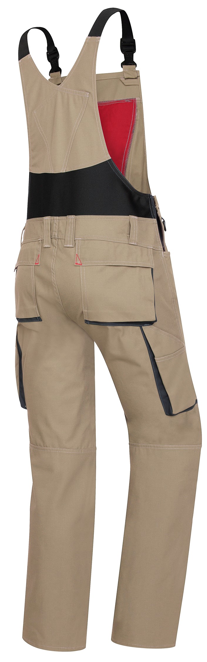 - Stretchträger mit Kunststoff-Steckschnallen, doppelte Latztasche mit Reißverschluss und Taschenklappe, 2 Stifttaschen, hochgezogener Rücken mit Stretcheinsatz für mehr Bewegungsfreiheit, regulierbare Bundweite