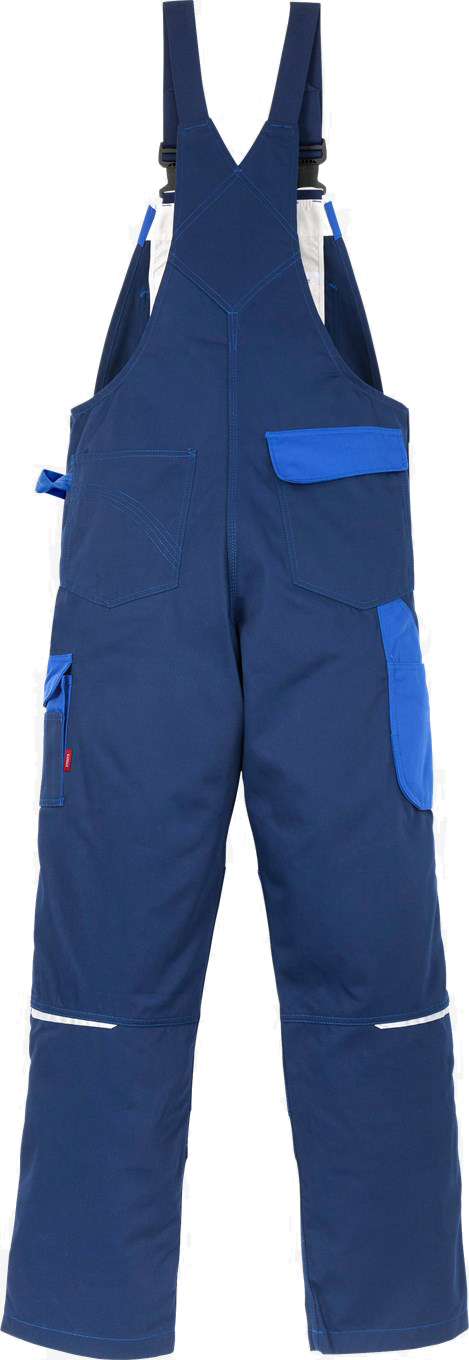 Latzhose mit Knietaschen für industrielle Arbeiten, zu 100% aus strapazierfähiger und komfortabler Baumwolle. Geeignet für Industriewäsche.