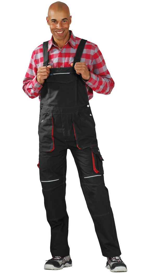 Als Klassiker unter den Arbeitshosen bietet die Basalt Latzhose durch das hochgezogene Rückenteil Tragekomfort, ohne zu verrutschen, und die Reflexbiesen als Designelement.