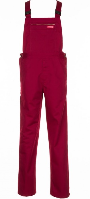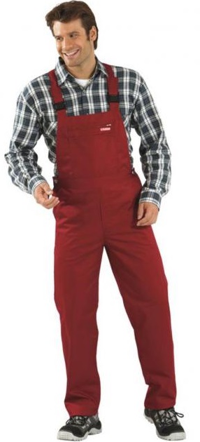 Brustlatz mit praktischer, aufgesetzter Latztasche, Latzpatte mit Klettverschluss, 2 eingesetzte Beuteltaschen, 2 Gesäßtaschen, Hosenschlitz mit Reißverschluss, doppelte Maßstabtasche, 2 seitliche Durchgriffe, Bundweite seitlich verstellbar, hochgezogenes Rückenteil, Träger mit elastischem Zwischenteil, aufwändiger Sicherheitsschnalle, Hammerschlaufe.