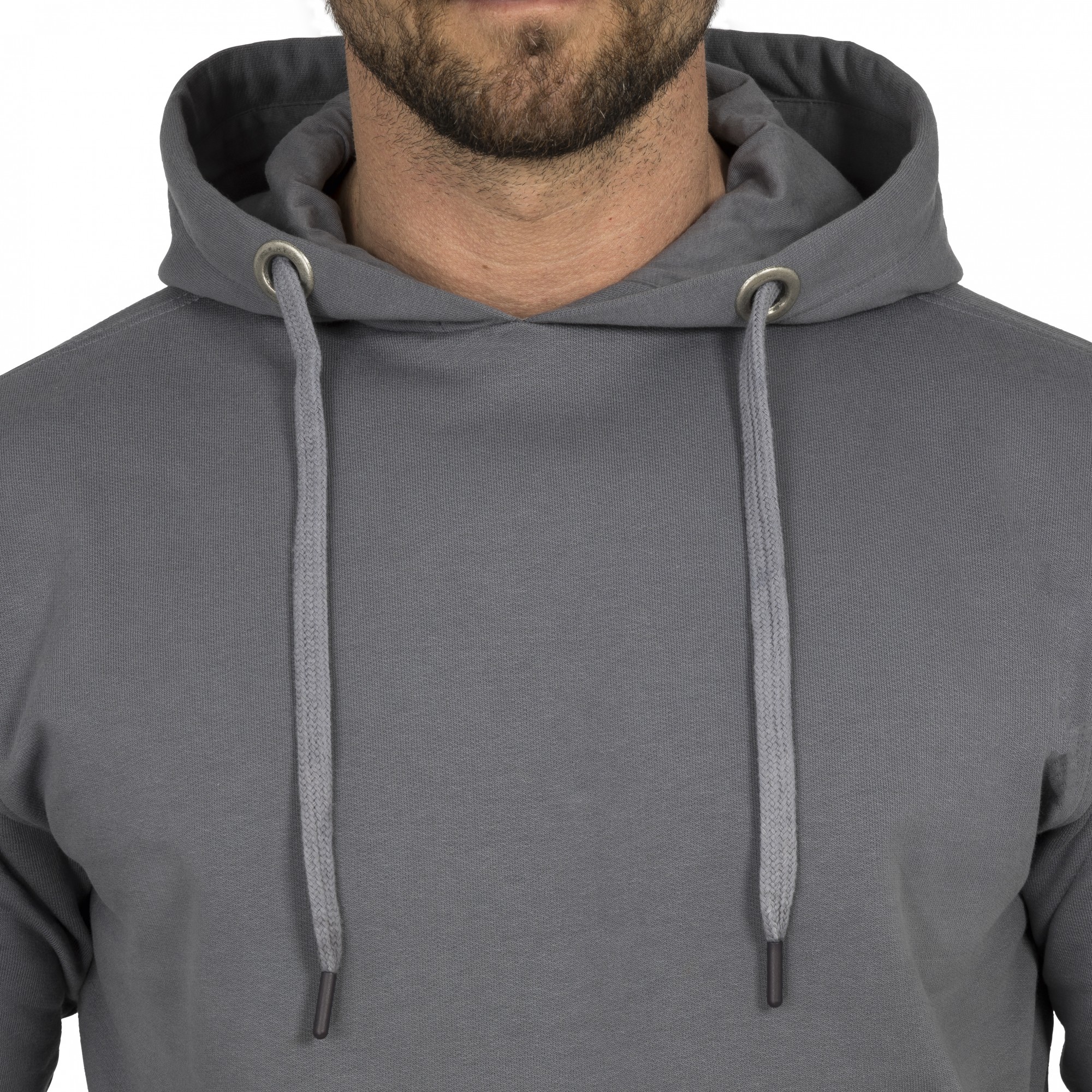 - Weitenregulierender Tunnelzug an Kapuze mit Flachbändern