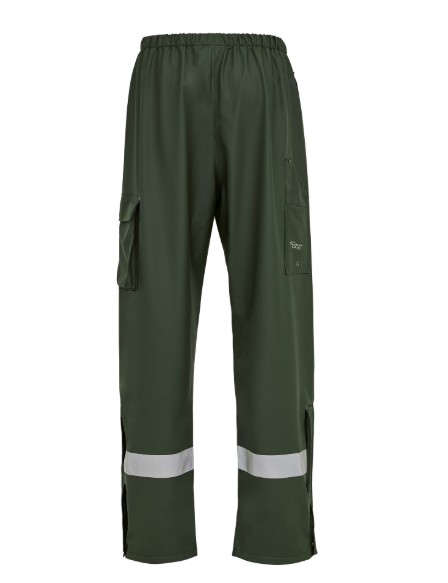 ELKA Rainwear Dry Zone D-Lux Regenhose mit refektierenden Streifen – vereint Funktionalität, Komfort und Sicherheit und ist die ideale Wahl für Ihre Arbeitskleidung in nassen Umgebungen. Diese Regenhose gehört zur Dry Zone D-LuxSerie von ELKA Rainwear, die für ihre Robustheit und Zuverlässigkeit bekannt ist, wenn es um Arbeitskleidung geht, die sowohl Regen als auch Wind unter anspruchsvollen Bedingungen standhalten muss. Die Hose ist mit sichtbaren refektierenden Streifen entlang der Beine ausgestattet, was Ihre Sicherheit erhöht, indem Sie in dunklen oder schlechten Wetterbedingungen besser sichtbar sind. Der elastische Bund sorgt für eine bequeme, fexible Passform, die sich Ihrem Körper und Ihren Bewegungen anpasst. Reißverschlüsse mit Windschutz an den Knöcheln erleichtern das An- und Ausziehen der Hose und schützen gleichzeitig vor eindringendem Wasser und Wind. Die praktischen Taschenöfnungen in der Seitennaht bieten einfachen Zugrif auf die Taschen der Kleidung, die Sie darunter tragen, während die zusätzliche Zollstocktasche und Cargotasche auf dem rechten bzw. linken Bein dafür sorgen, dass Sie immer die notwendigen Werkzeuge zur Hand haben. Diese Regenhose ist so konzipiert, dass sie den härtesten Wetterbedingungen standhält, und mit ihren vielen funktionalen Details bietet sie Ihnen den notwendigen Komfort und Schutz während des gesamten Arbeitstages. Kombinieren Sie sie mit der passenden Dry Zone D-Lux Regenjacke mit extra Länge für einen vollständigen Schutz und schafen Sie ein komplettes, wasserdichtes Regenkleidungsset, das Sie auch in den anspruchsvollsten Umgebungen trocken und sicher hält.
