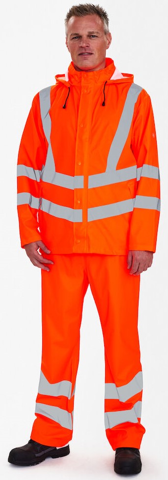Funktionelle Regenjacke mit verschweißten Nähten und Belüftung im Rücken. Reißverschluss und Klettverschluss vorne. Zwei geräumige und funktionelle Seitentaschen sowie große Innentaschen. Abnehmbare, verstellbare Kapuze mit Platz für den Arbeitshelm. Möglichkeit zum Verstellen der Ärmel. Bekleidungsklasse 3. Getestet nach 5 Wäschen