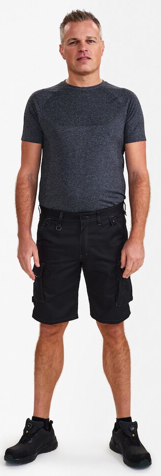 Funktionelle Handwerkershorts aus Stretch mit schmaler Passform und vielen praktischen Details. Einsätze aus extrem elastischem, atmungsaktivem Stretchmaterial im Innennaht-Panel sorgen für noch mehr Tragekomfort. D-Ring vorne, z. B. für eine ID-Karte. Zwei Gesäßtaschen. Handytasche mit Patte am rechten Oberschenkel. Links sitzt eine Schenkeltasche mit Patte. Die Schenkeltasche besitzt ein zusätzliches Fach mit Reißverschluss. Verstärkte Zollstocktasche mit zusätzlichen Fächern und Werkzeugschlaufen. Schenkeltasche und Zollstocktasche mit freihängendem Boden gewähren optimale Bewegungsfreiheit. Es können moderne Holstertaschen (9360-307) angebracht werden.