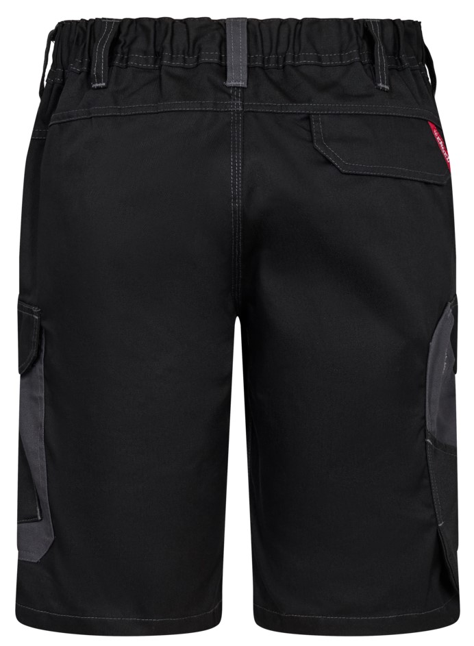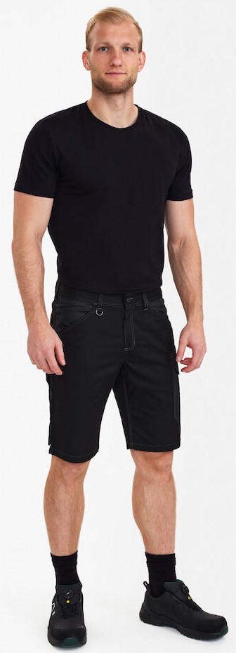 Zweifarbige Shorts mit modernem Schnitt, bei denen viel Wert auf eine gute Passform gelegt wurde. Die Shorts sind aus einem Stoff gefertigt, der angenehm zu tragen ist. Die Shorts haben einen praktischen Gummizug hinten in der Taille, der für eine gute Passform sorgt und dafür, dass bei sich wiederholenden Bewegungen nichts verrutscht. Bei der Entwicklung der Shorts wurde der Schwerpunkt auf die Industrie gelegt. Sie verfügen über alle notwendigen funktionellen Details und sind auch für Fahrer, Lagermitarbeiter oder ähnliche Arbeitsfunktionen geeignet. Die Shorts haben besonders viele funktionelle Taschen wie beispielsweise zwei geräumige schräge Taschen vorne. Gesäßtasche mit Klettverschluss. Auf der linken Seite befindet sich eine Schenkeltasche mit Patte und separater Handytasche, auf der rechten Seite eine Zollstocktasche mit einem lose hängenden Boden und Verstärkung. Für mehr Sichtbarkeit und Sicherheit haben die Shorts reflektierende Details vorne und hinten.