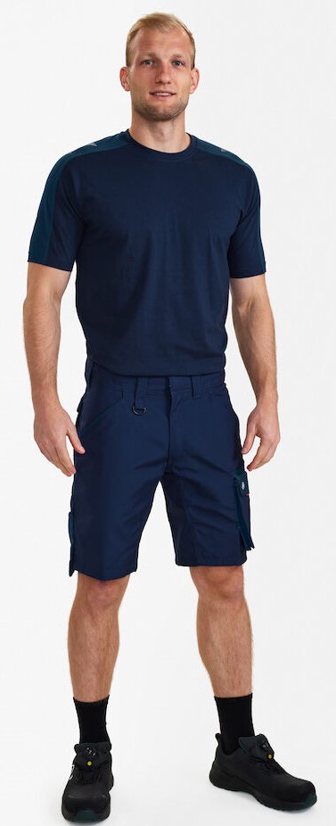Funktionelle Shorts mit vielen Details. Optimale Passform, mit Panel an der Innennaht im Schritt für mehr Bequemlichkeit. Zwei geräumige, schräg sitzende Einschubtaschen vorne. Schlaufe mit D-Ring (vorne) zur Befestigung einer ID-Karte. Zwei geräumige Gesäßtaschen mit Patte und Klettverschluss. Schenkeltasche mit Reißverschlusstasche fürs Handy, zusätzliche kleine Tasche. Sie ist geräumig und sorgt dank des freihängenden Bodens für mehr Bewegungsfreiheit. Unten verstärkte Zollstocktasche mit zusätzlichen Fächern. Auch die Zollstocktasche hat einen freihängenden Boden. Für Industriewäsche geeignet.