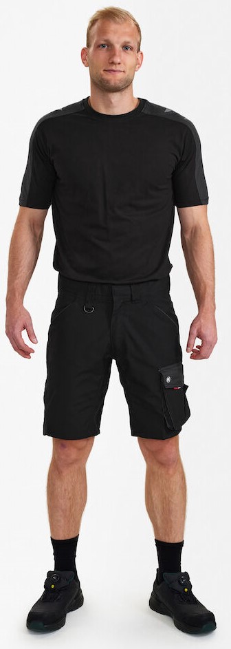 Funktionelle Shorts mit vielen Details. Optimale Passform, mit Panel an der Innennaht im Schritt für mehr Bequemlichkeit. Zwei geräumige, schräg sitzende Einschubtaschen vorne. Schlaufe mit D-Ring (vorne) zur Befestigung einer ID-Karte. Zwei geräumige Gesäßtaschen mit Patte und Klettverschluss. Schenkeltasche mit Reißverschlusstasche fürs Handy, zusätzliche kleine Tasche. Sie ist geräumig und sorgt dank des freihängenden Bodens für mehr Bewegungsfreiheit. Unten verstärkte Zollstocktasche mit zusätzlichen Fächern. Auch die Zollstocktasche hat einen freihängenden Boden. Für Industriewäsche geeignet.