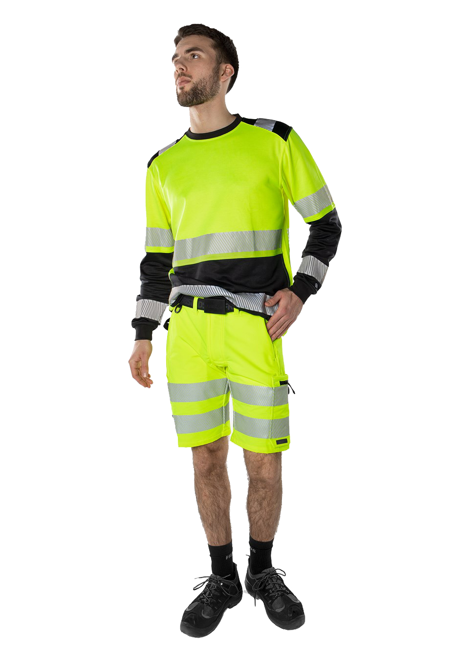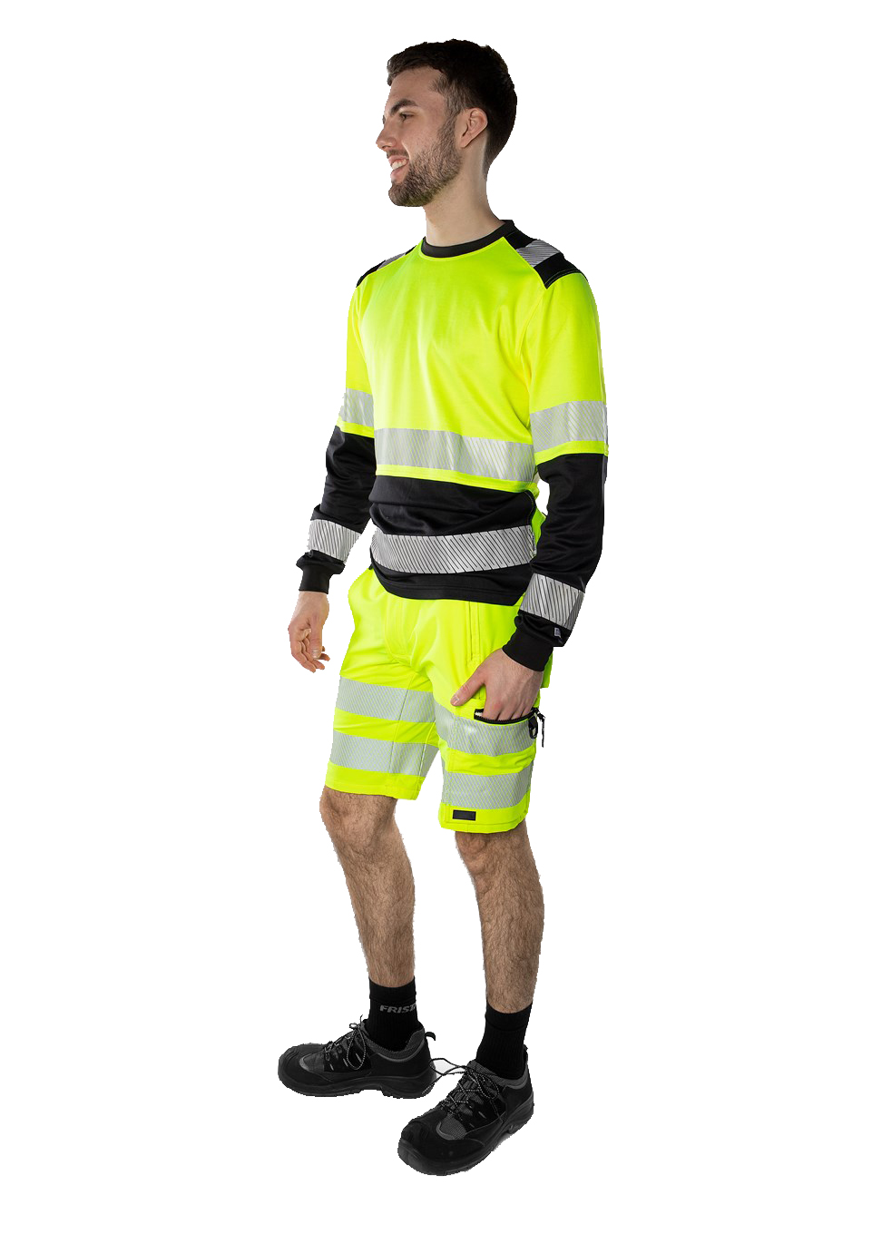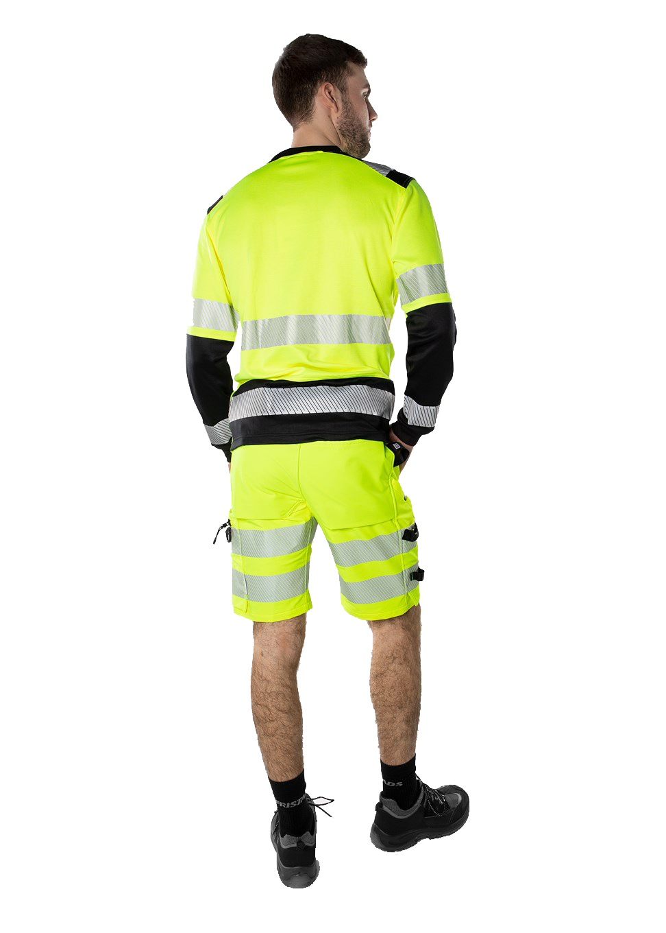 Nachhaltige High-Vis-Shorts aus biobasierten und recycelten Materialien. Doppelter Komfort durch 4-Wege-Stretch sowie Stretcheinsätze am Bund. Mit EPD (Environmental Product Declaration). Konzept: Stiby