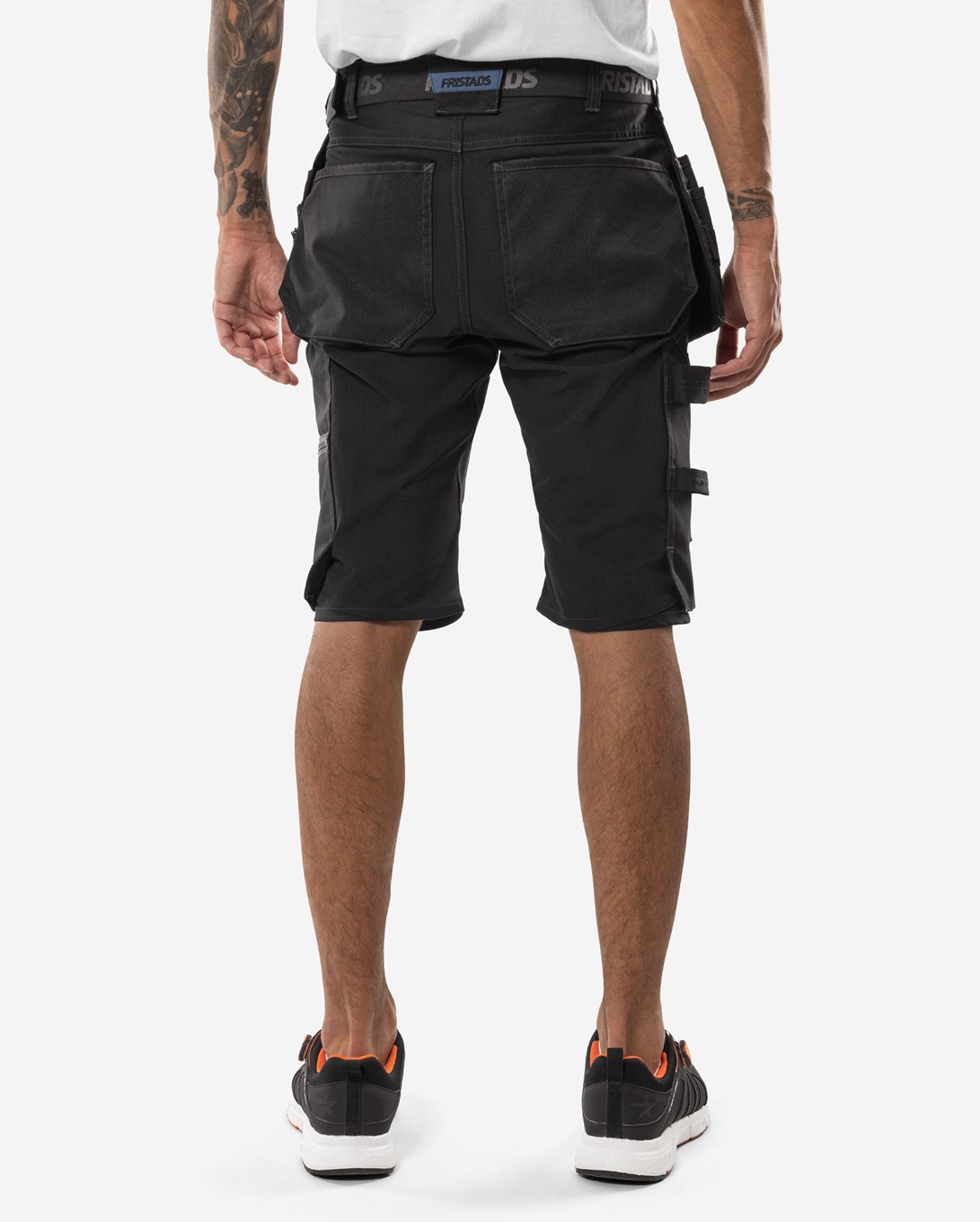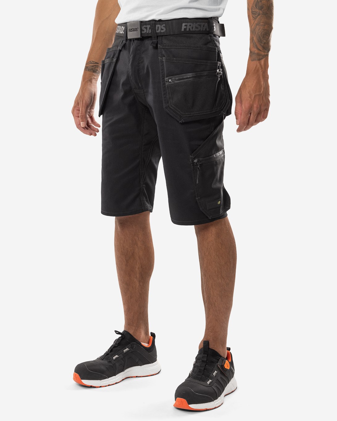 Handwerkershorts mit Einsätzen aus 4-Wege-Stretchmaterial. Aus leichtem und strapazierfähigem Material mit mechanischem Stretch, teilweise aus recyceltem Polyester. Bequeme Arbeitsshorts mit allen notwendigen Funktionen und Eigenschaften. Konzept: Alnaryd