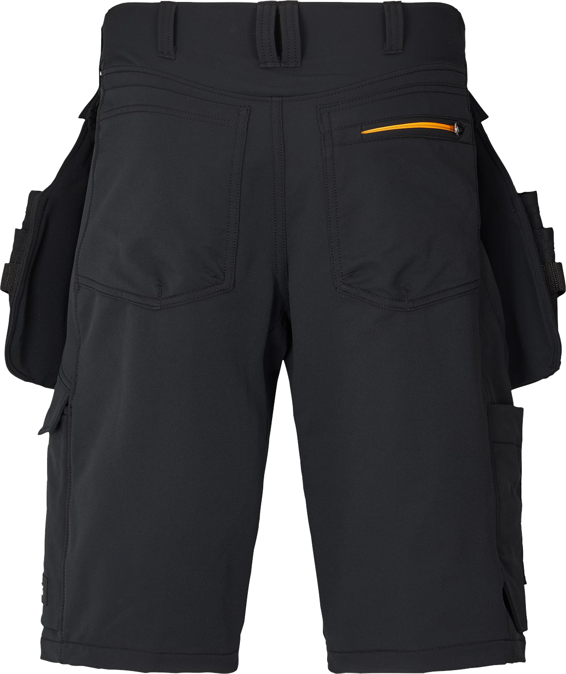 Flexible und bequeme Arbeitsshorts aus Full-Stretch für 100% Bewegungsfreiheit. Hergestellt aus atmungsaktivem, schweißableitendem und schnell trocknendem Material. Entworfen mit abnehmbaren Hängetaschen für Schrauben, Nägel oder Werkzeug.