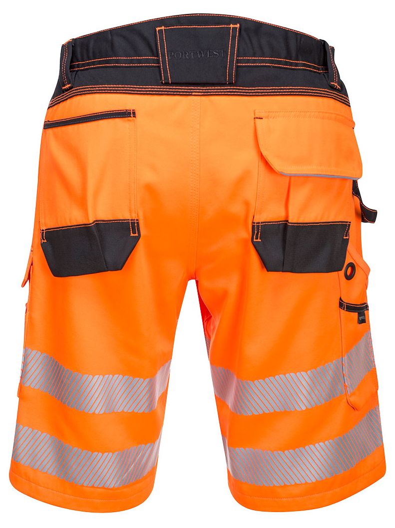 Die PW3 Warnschutz Shorts sind elegant und dynamisch und bieten eine moderne Passform für hervorragenden Arbeitskomfort. Zahlreiche Taschen, darunter eine Zollstocktasche und eine leicht zugängliche Oberschenkeltasche, bieten ausgezeichnete persönliche Sicherheit. Zu den Premium-Funktionen gehören HiVisTex Pro-Reflexstreifen, Schrittzwickel, Hammerschlaufe und verstärkte Paneele in Bereichen mit hohem Verschleiß für maximale Haltbarkeit.
