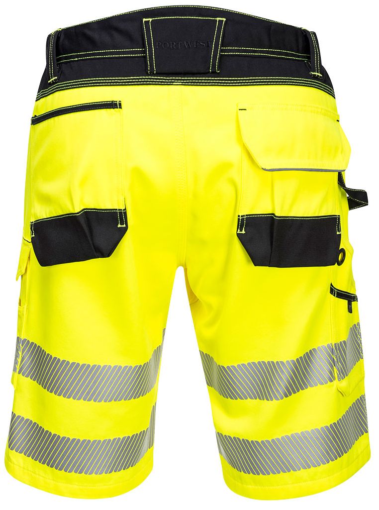 Die PW3 Warnschutz Shorts sind elegant und dynamisch und bieten eine moderne Passform für hervorragenden Arbeitskomfort. Zahlreiche Taschen, darunter eine Zollstocktasche und eine leicht zugängliche Oberschenkeltasche, bieten ausgezeichnete persönliche Sicherheit. Zu den Premium-Funktionen gehören HiVisTex Pro-Reflexstreifen, Schrittzwickel, Hammerschlaufe und verstärkte Paneele in Bereichen mit hohem Verschleiß für maximale Haltbarkeit.