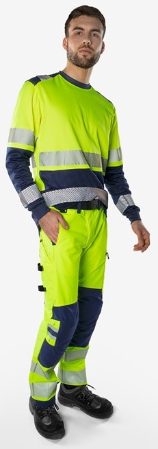 Nachhaltige High-Vis-Stretchhose mit zusätzlichen Stretcheinsätzen am Bund für hervorragenden Komfort. Vollständiger 4-Wege-Stretch aus biobasierten und recycelten Materialien bietet optimale Bewegungsfreiheit. Verstärkt an exponierten Stellen. Mit EPD (Environmental Product Declaration).