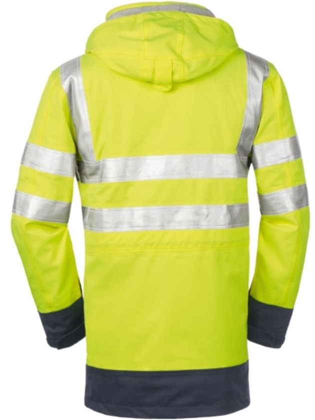 - schwer entflammbare 3M Scotchlite™ Reflexstreifen umlaufend um Körper und Ärmel, sowie auf Schlutern