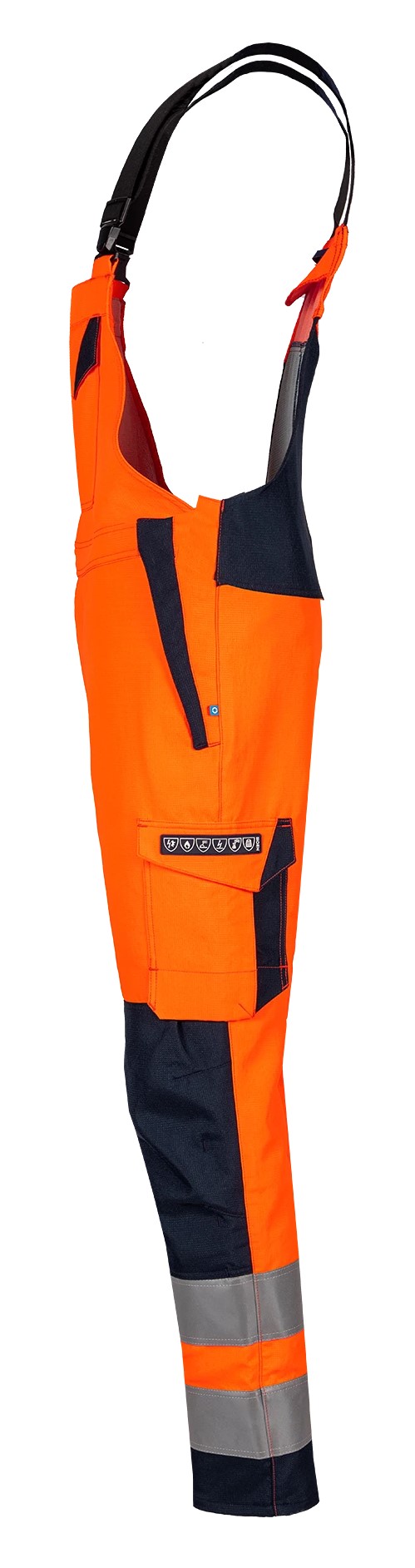 Diese orangefarbene Warnschutz-Latzhose mit marineblauen Kontrastteilen bietet eine Warnschutzklasse 2 gemäß EN ISO 20471, sowie ARC-Schutz. Gut positionierte Taschen und höhenverstellbare Kniepolstertaschen machen diese Latzhose besonders praktisch. Für eine perfekte Passform sind die elastischen Hosenträger leicht verstellbar und befinden sich Druckknöpfe an den Seiten.