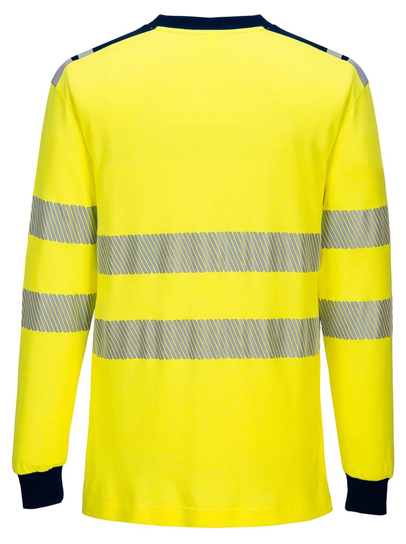 Das aus leichtem Modacryl-Gewebe gefertigte T-Shirt bietet durch sein segmentiertes Band-Design eine hervorragende Bewegungsfreiheit. Dieses leichte und stylische Langarm-T-Shirt ist die perfekte Wahl, um dem Träger erhöhte Sichtbarkeit und Schutz in gefährlichen Situationen zu bieten.