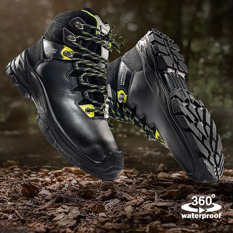 • Wasserdichter mittelhoher Sicherheitsschuh mit Schutz gegen Kettensägenschnitte