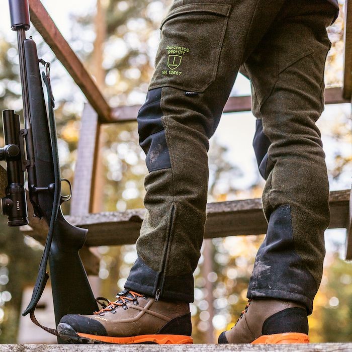 Bei unserer Sauenschutz- Jagdhose X-treme Protect Loden trifft Tradition auf Innovation. Unsere X-treme Protect aus Loden verbindet traditionelle Materialien wie die Verwendung von Loden und innovativen neuen Materialien wie unser Wild Protection Light Schutz, Cordura und Polyamid Materialien. Der eigens entwickelte PSS Loden ist ein stark verfilztes Lodengewebe mit einer Diagonalbindung, er besitzt zudem Elasthan und ist somit sehr dehnfähig. Loden bietet einfach viele Funktionelle Vorteile: Zum einen geräuscharm, wärmt auch in feuchtem Zustand, ist feuchtigkeitsableitend, einige Zeit wasserbeständig und hemmt unangenehme Gerüche.