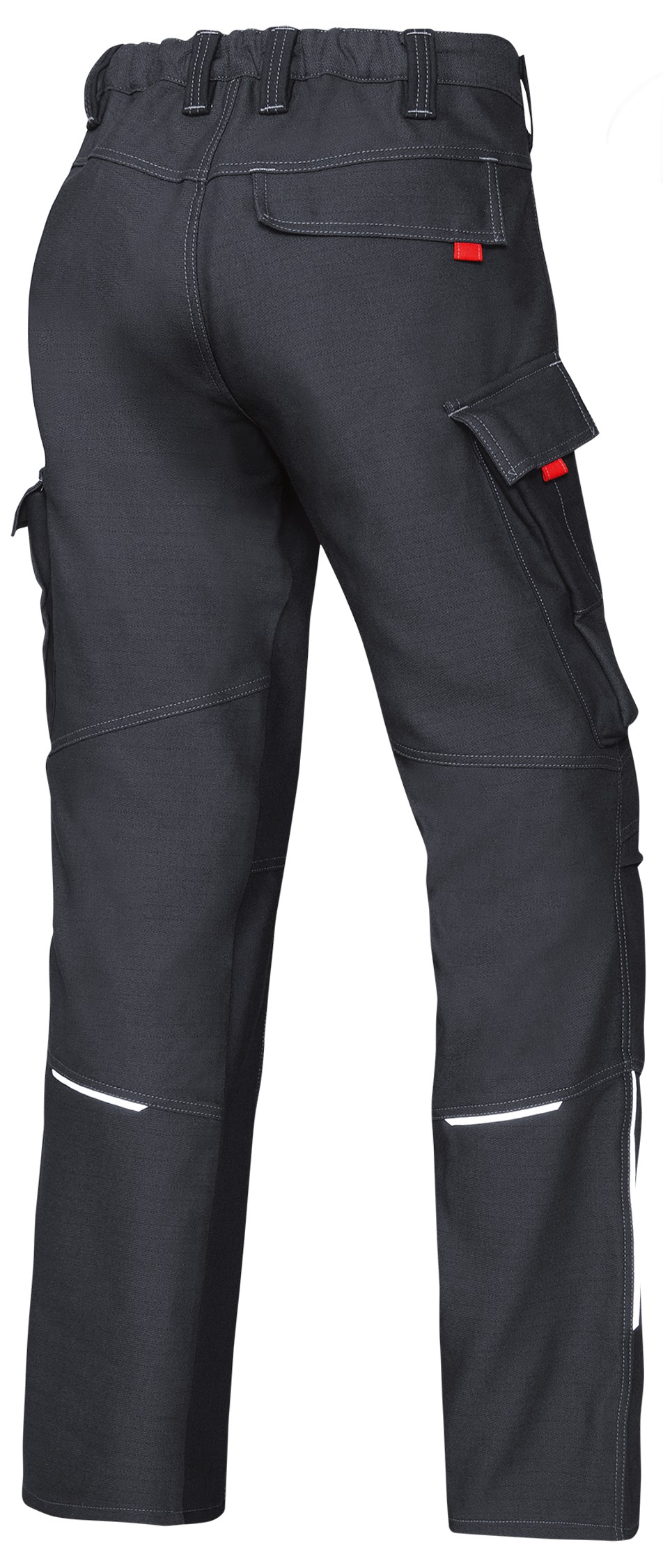 - 1 Zollstocktasche mit aufgesetzten Stifttaschen mit Patte verschließbar, 1 mit Patte verschließbare Gesäßtasche, vorgeformtes Bein