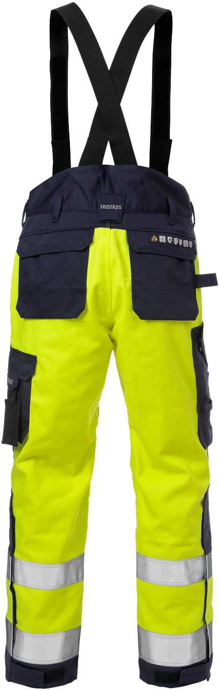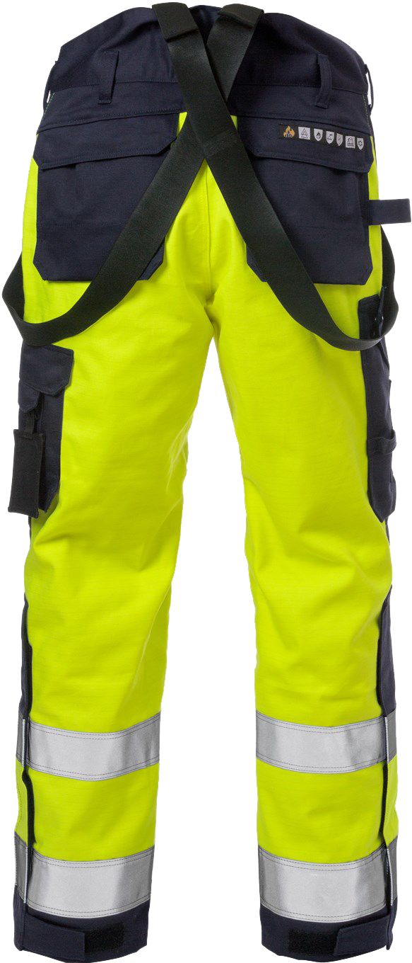 Flammgeschützte Winterhose, die für das Schweißen mit hohem Lichtbogenschutz zugelassen ist. Multinorm-High-Vis-Hose aus langlebigem, flammhemmend behandeltem Material mit zusätzlichen Verstärkungen, abnehmbaren Hosenträgern und Knietaschen.