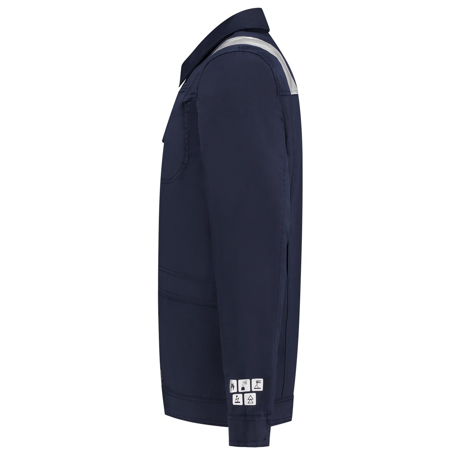 Diese Arbeitskleidung ist für Arbeiten mit extrem hohen Schutzbestimmungen konzipiert und wird vor allem eingesetzt wenn vor mehreren Risiken zugleich geschützt werden soll. Die Arbeitsjacke Multinorm ist locker geschnitten und besteht aus 74% Baumwolle, 25% Polyester und 1% Sonstige Fasern. Durch das Twill-Gewebe ist die Jacke äußerst widerstandsfähig. Die Jacke erfüllt die folgenden Normen: Schutz gegen Flammen (EN ISO 14116:2015), Schutz vor flüssige Chemikalien (EN 13034:2005 + A1:2009), Schutz bei Schweißen und verwandten Verfahren (EN11611:2015), Schutz vor elektrischem Flammbogen (IEC 61482-2), Schutz vor elektrostatischer Aufladung (EN 1149-5:2008). Diese Jacke wurde speziell für Arbeiten im Innenbereich entwickelt, wobei vor allem auf hohen Tragekomfort und genügend Stauraum durch verschiedene multifunktionale Taschen geachtet wurde. Darüber hinaus kann dieser Artikel laut EN ISO 15797 bis 75 °C industriell gewaschen werden.