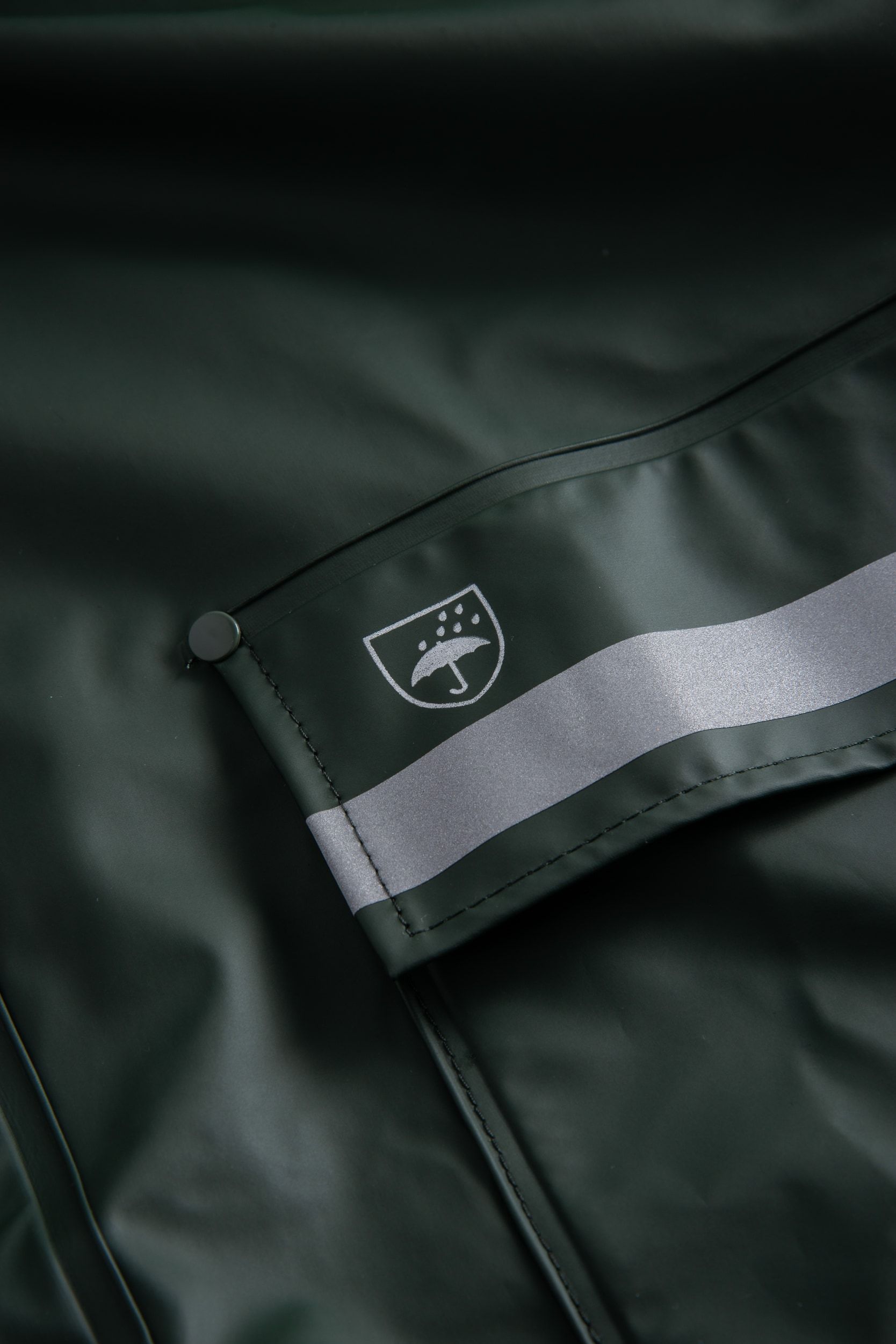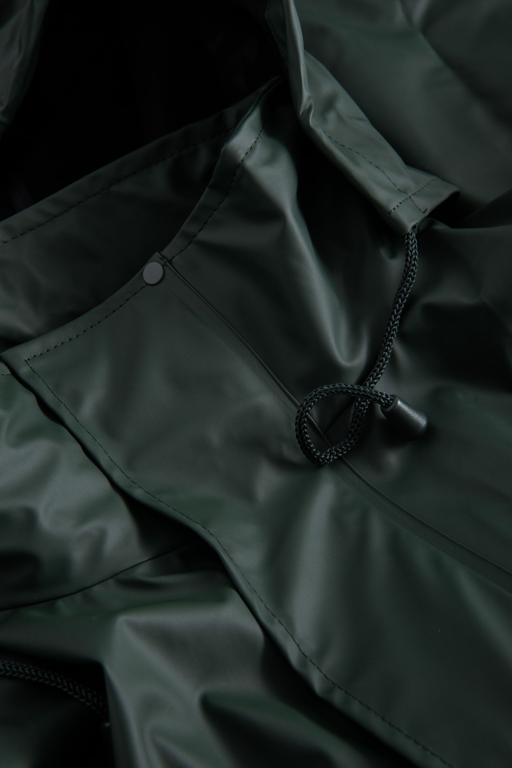 - Feste Kapuze mit Kordelzug, versteckt im Kragen