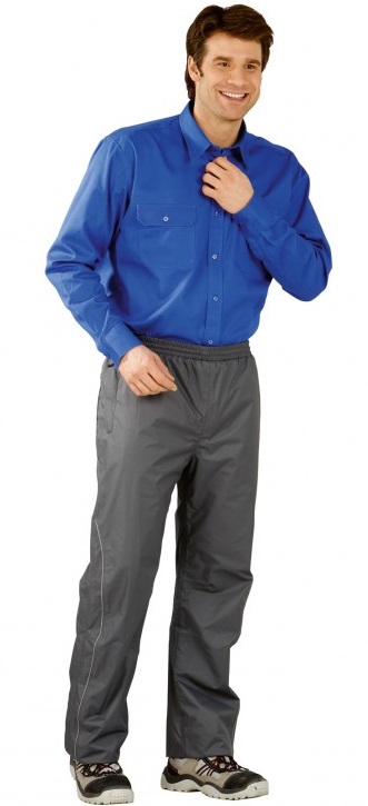 Atmungsaktiv, wasserdicht, Nähte hinterklebt, 2 Beuteltaschen mit Reißverschluss, 1 Gesäßtasche mit Reißverschluss, Reflexbiesen als Applikationen, elastischer Einsatz im Bund mit Kordelzug, Fußweitenverstellung mit Klettverschluss, Reißverschluss am Unterschenkel.