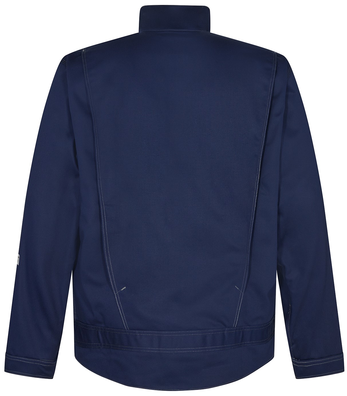 Flammhemmende Jacke mit doppelter Knopfleiste und verdeckten Druckknöpfen vorne. Verlängerte Rückenpartie. Mit Patte und Druckknöpfen verschließbare Brusttaschen. Zwei Einschubtaschen mit Patte und Klettverschluss. Verstellbare Manschetten mit Druckknöpfen. Bewegungsfalte sowie Belüftung im Rücken für mehr Komfort. Praktische Details an Taschen und Bewegungsfalte verhindern, dass Funken hängen bleiben. Für Industriewäsche geeignet.